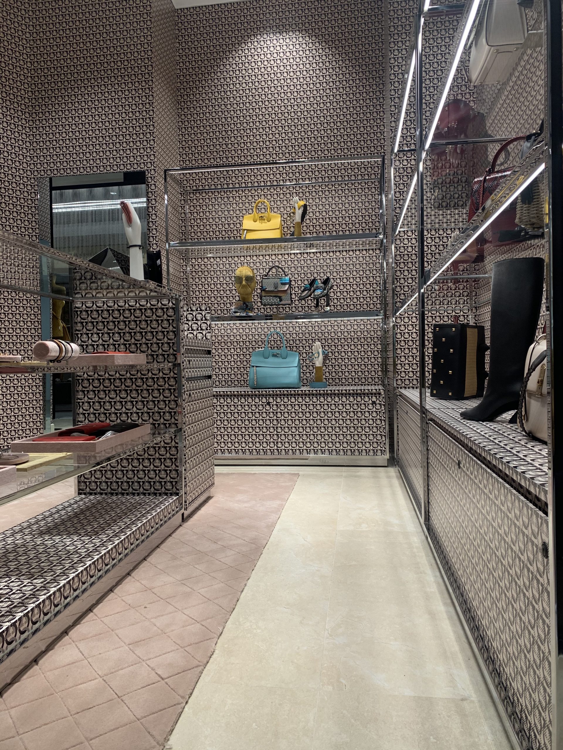 La primera se materializó en el recinto con un espejo de efecto infinito, el cual está iluminado a través de un letrero neón, teniendo de fondo un grabado en acrílico, atrayendo las miradas de cuanta persona pasa por enfrente una especie de recepción y bienvenida al proyecto que se abre a todo lo largo como una cortina insinuando sutilmente la marca. La segunda, fueron cajas de luz con alimentación eléctrica independiente combinadas con elementos reflejantes para darle mas carácter al producto y mimetizarlo dentro de la misma arquitectura es decir hacerlo parte del espacio y jugar con el, que a su vez funcionan como la estantería principal para el calzado y la tercera se resolvió con tiras de luz cálida fijas a la estructura principal enfatizando en los vértices del proyecto, teniendo como resultado un proyecto que se complementa a sí mismo con cada uno de sus elementos.